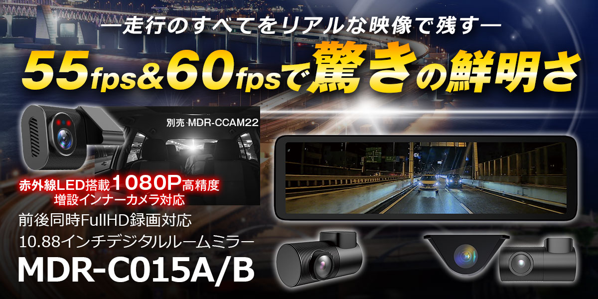 - 新商品 2025年11月05日 60FPSのリアカメラ,GPSを搭載した純正交換式デジタルルームミラー MDR-G1011を公開しました。