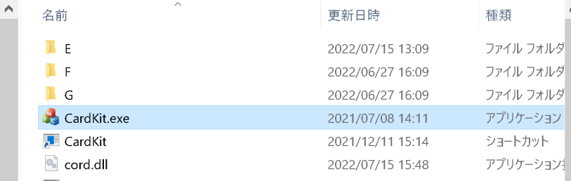 4.「CardKit」フォルダを開き「CardKit.exe」を右クリック「管理者で実行」を選択してソフトを起動します。