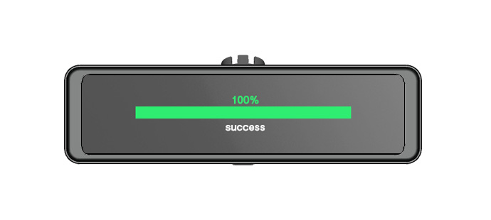 9.FWアップデート完了後に「100% success」が表⽰されます。microSDカードを本機から取り外してください。本機は正常に起動し、警告画面が表示されれば更新は完了です。