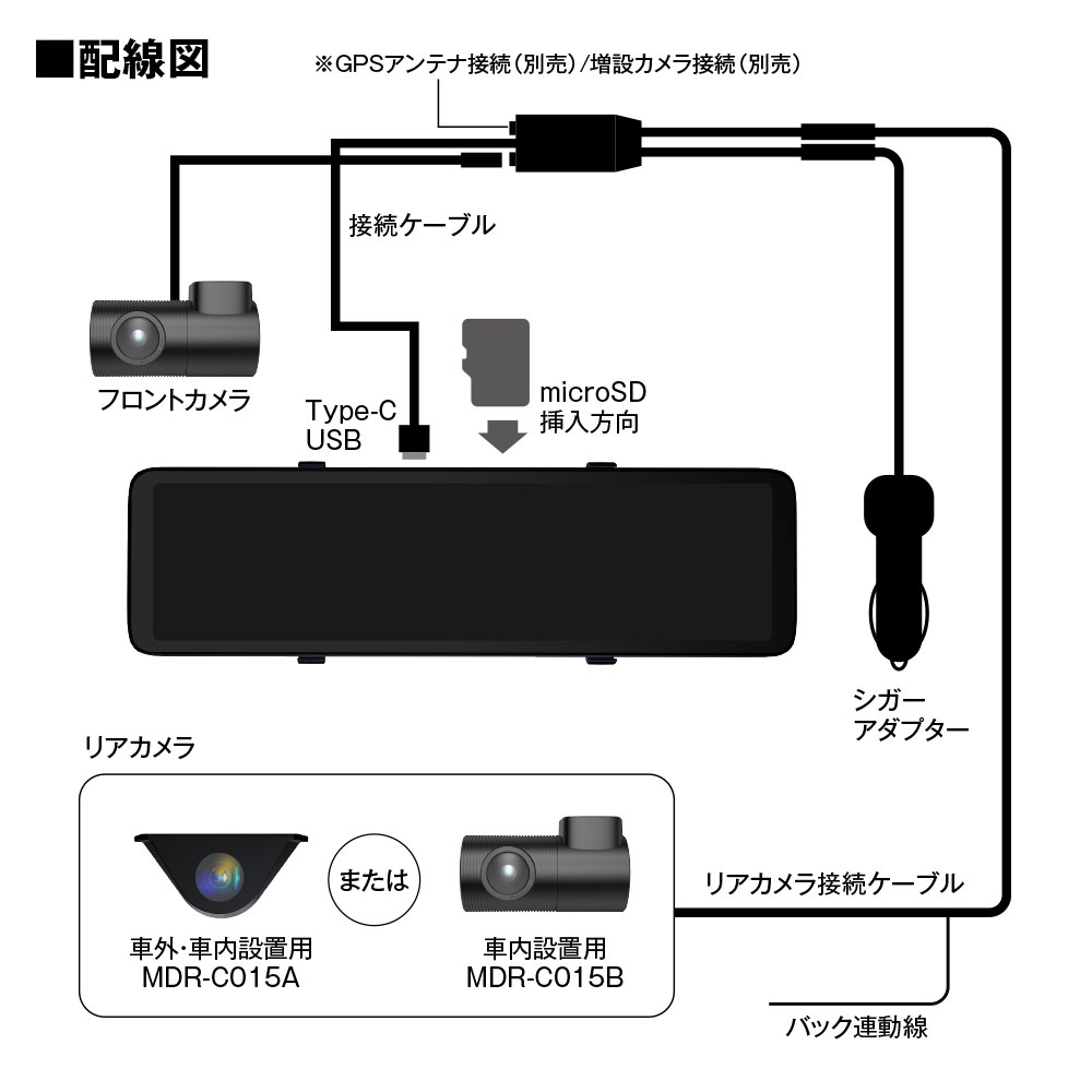 増設カメラは車内録画に最適の別体タイプで、本体の設置位置には捉われずお好みで設置可能。