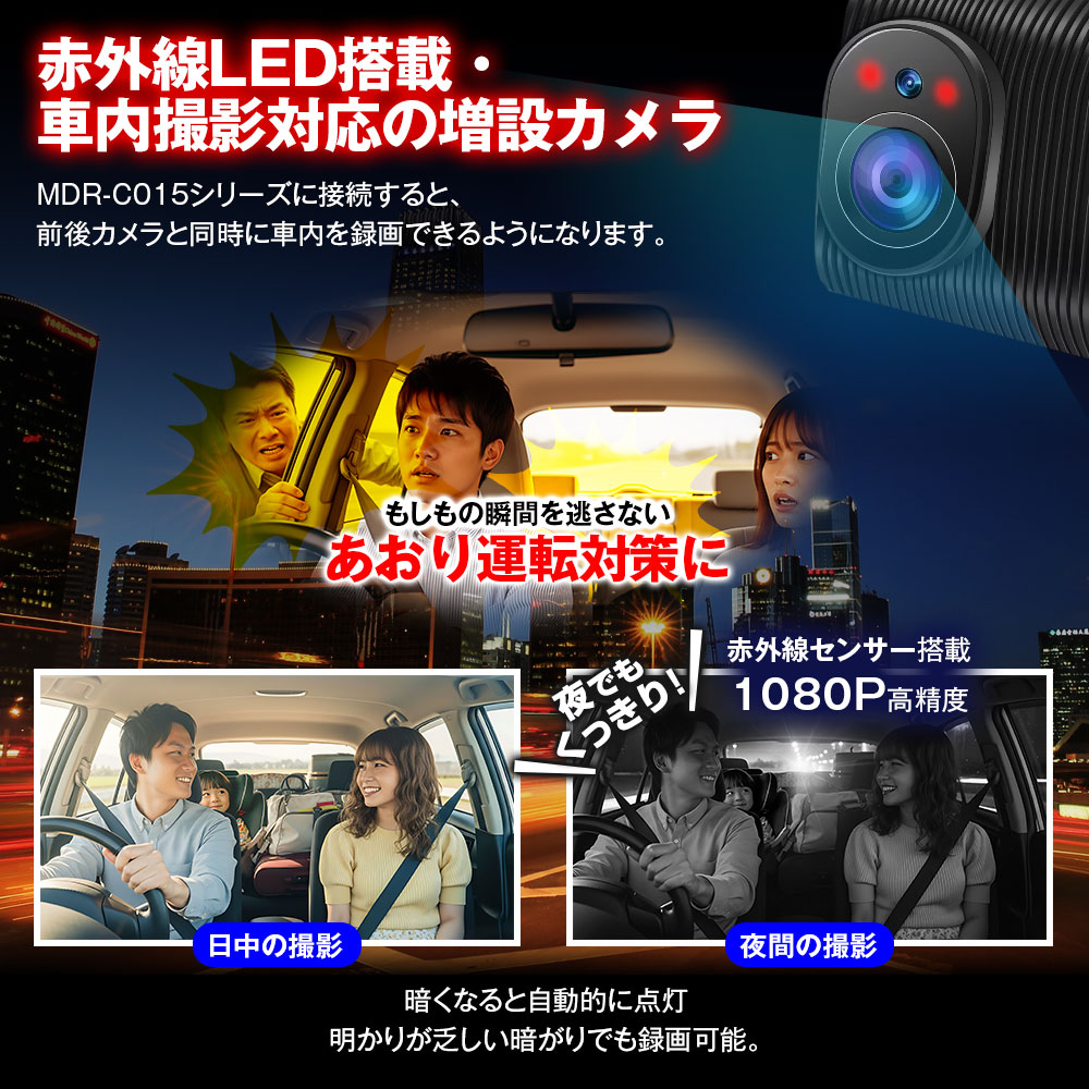赤外線LED搭載・車内撮影対応の増設カメラ