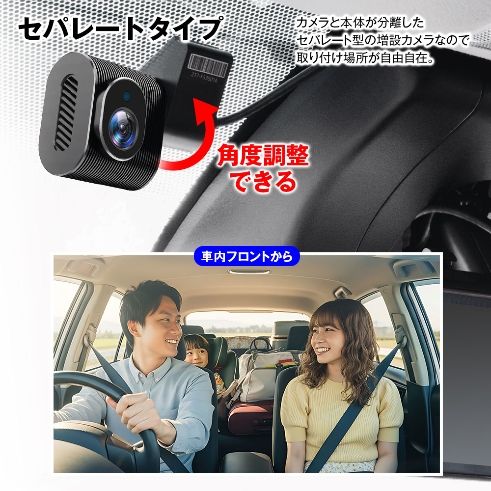 カメラと本体が分離したセパレート型の増設カメラなので取り付け場所が自由自在。