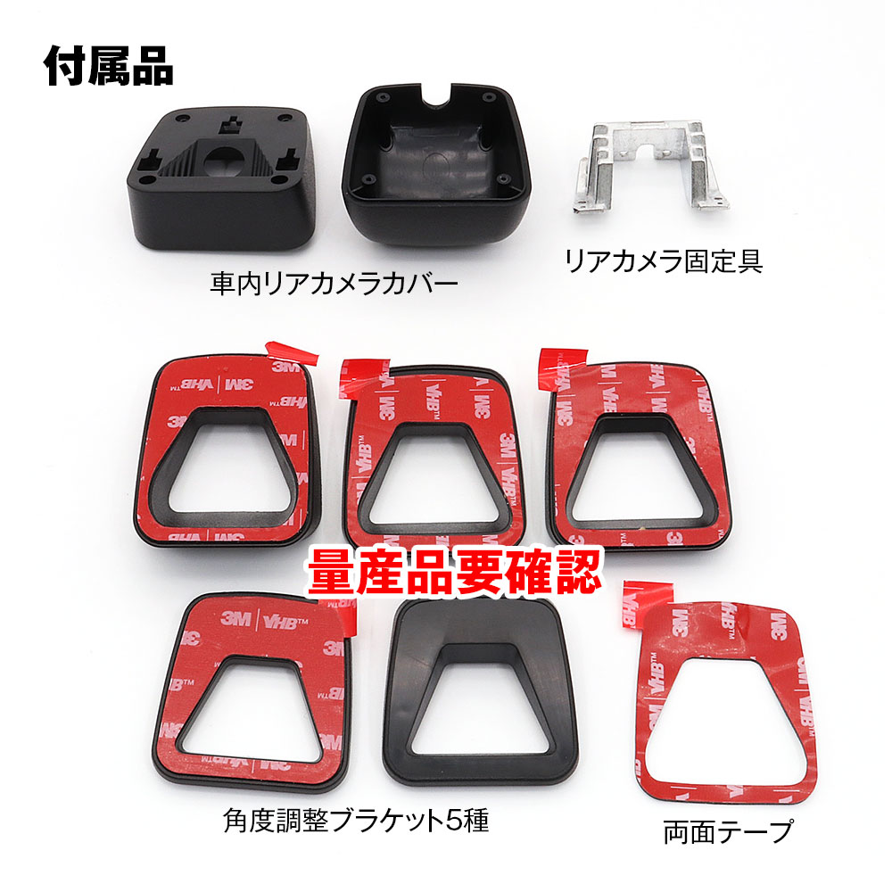 車内リアカメラカバー×1、カメラ固定具×1、角度調整ブラケット×5