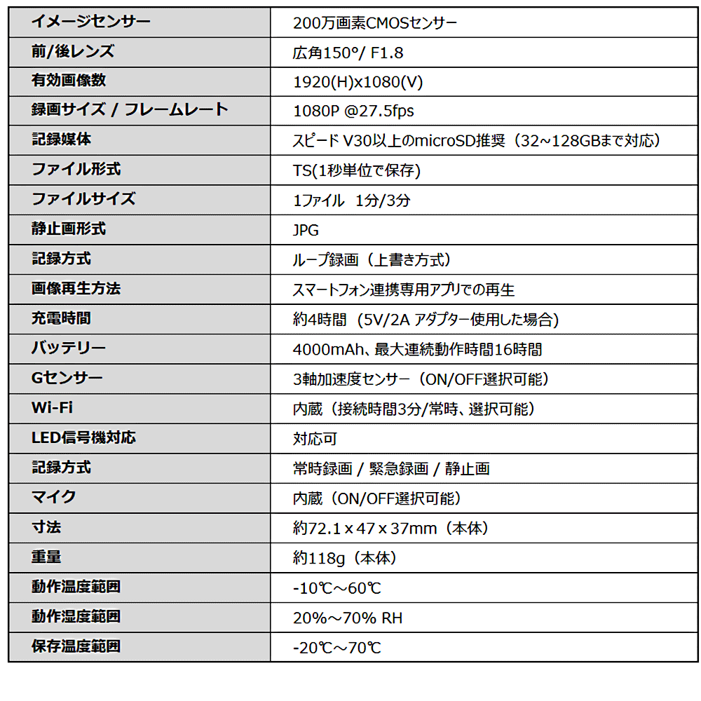 記録媒体:スピード V30以上のmicroSD推奨(32~128GBまで対応)