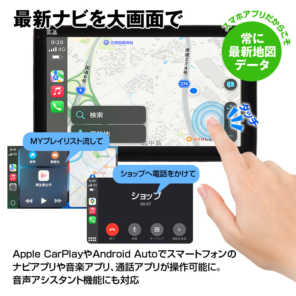 高性能スピーカー搭載しているので、ステレオ音声に対応します。カースピーカーへのややこしい配線は必要ありません。