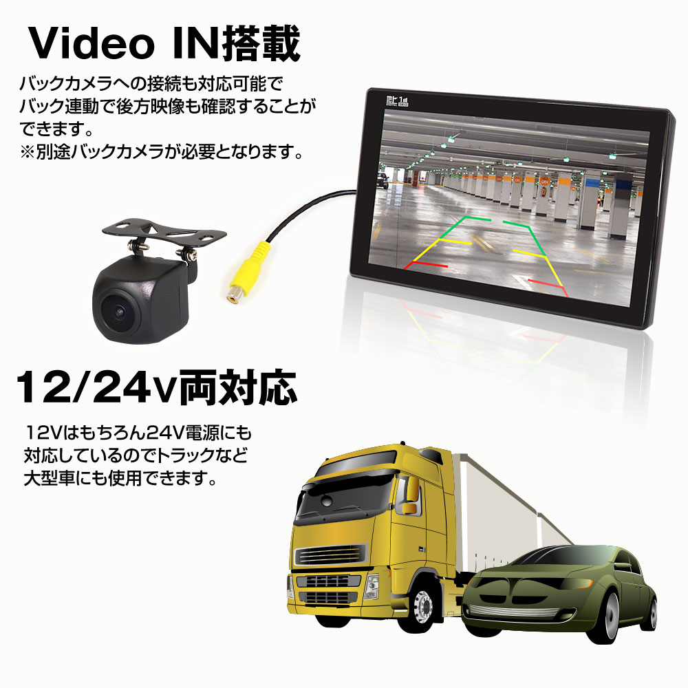付属の映像入力ケーブルを使用しバックカメラと接続することでバック連動モニターとしてご使用いただけます。