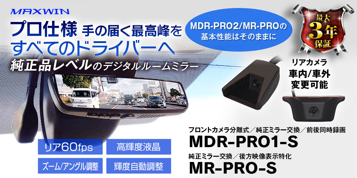- 新商品 2025年11月05日 60FPSのリアカメラ,GPSを搭載した純正交換式デジタルルームミラー MDR-G1011を公開しました。